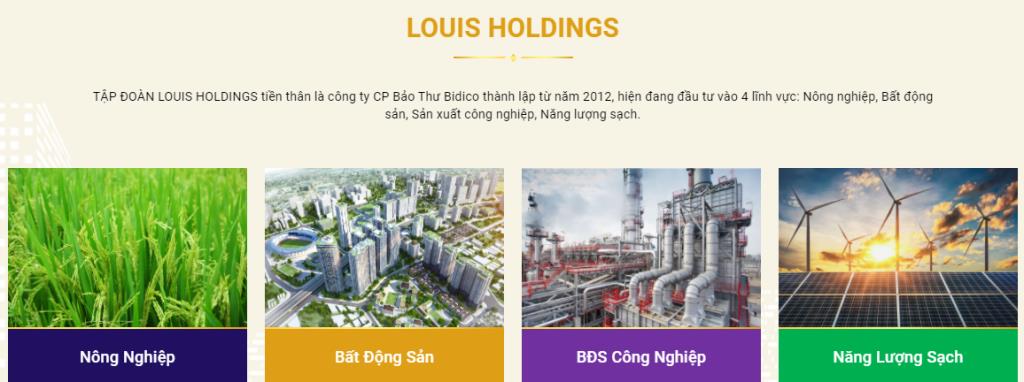Công ty Cổ phần Tập đoàn LOUIS HOLDINGS tiền thân là công ty CP Bảo Thư Bidico thành lập từ năm 2012, hiện đang đầu tư vào 4 lĩnh vực: Nông nghiệp, Bất động sản, Sản xuất công nghiệp, Năng lượng sạch.