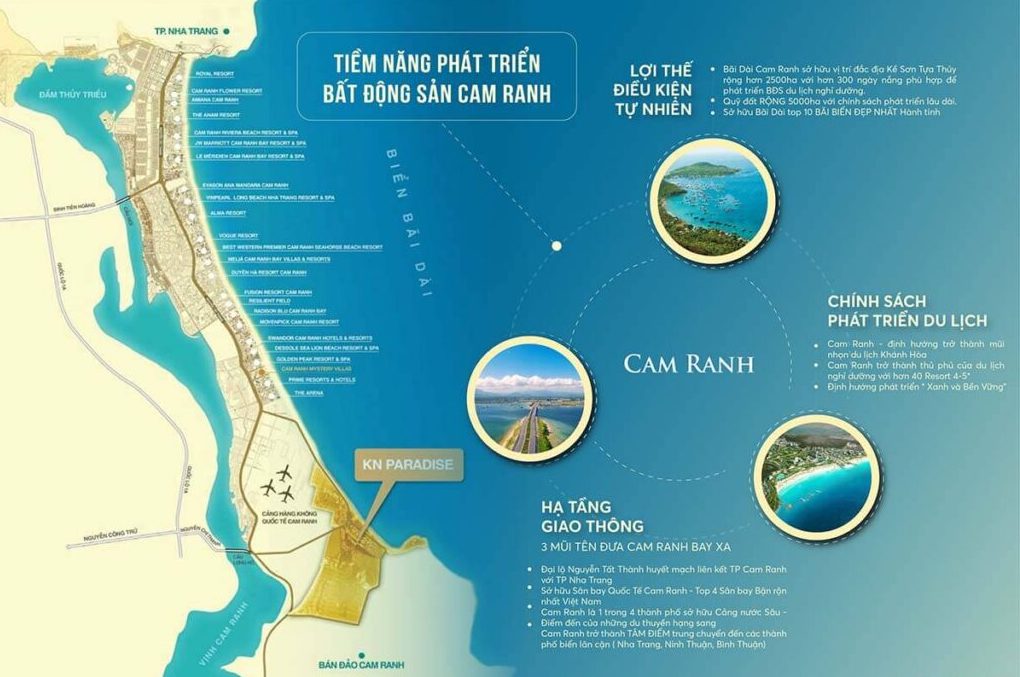 Thông tin TP Cam Ranh được định hướng trở thành đô thị du lịch – logistics, cùng với sự đầu tư hạ tầng đồng bộ và hoàn thiện giúp khu vực này đang phát triển mạnh mẽ.