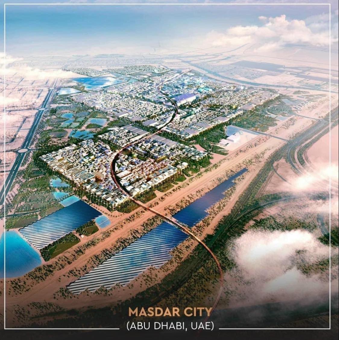 Khu đô thị Masdar City (Abu Dhahi, UAE) có quy mô 640ha, được mệnh danh là “Thành phố không carbon đầu tiên trên thế giới”, khu đô thị tích hợp công nghệ nhưng vẫn thân thiện với môi trường.