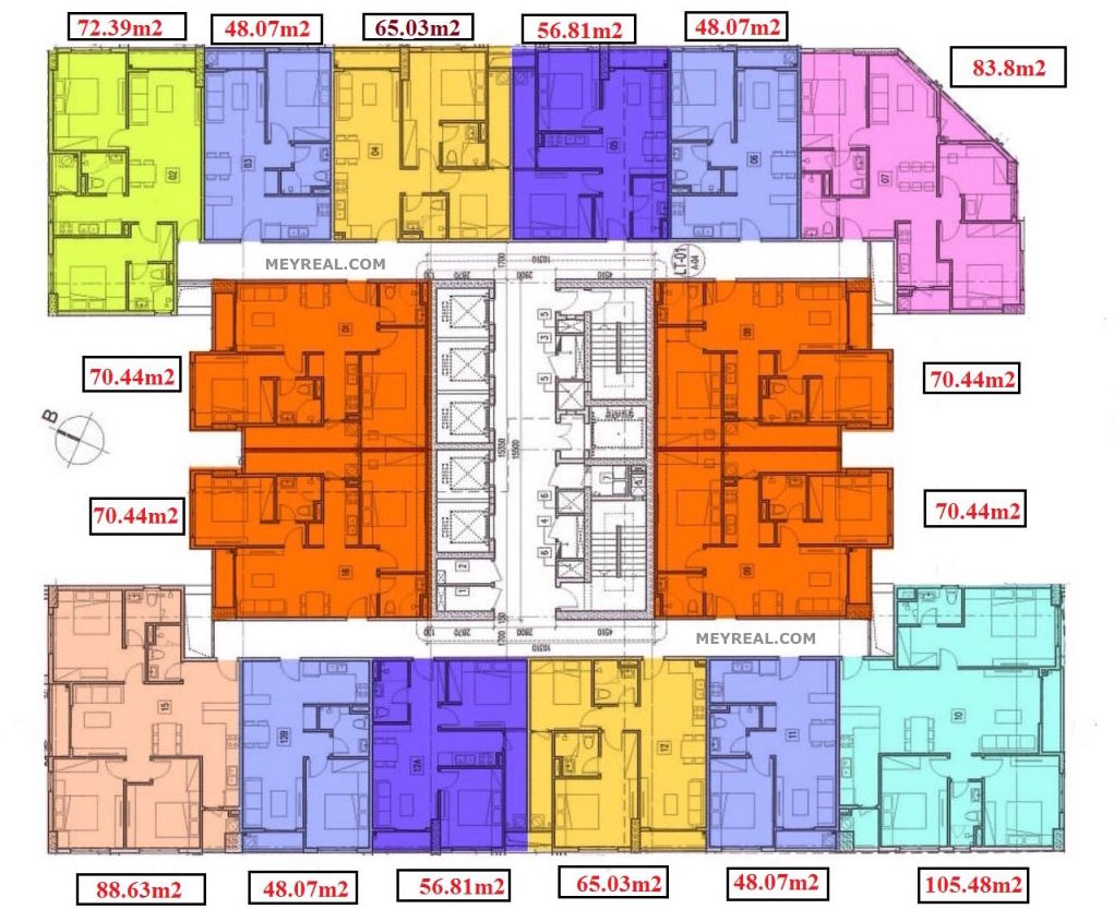 + Tầng 6 – 26: Khối căn hộ ở có quy mô dân số khoảng hơn 1.000 người