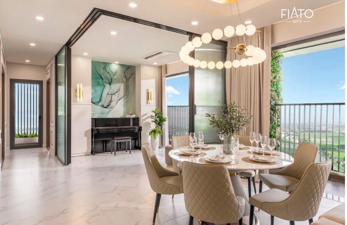 Chưa cần ra tới ban công, từ trong nhà, cư dân FIATO City đã là chủ nhân của skyview panorama mãn nhãn nhờ hệ ban công trải dài xuyên suốt căn hộ. Không chỉ ban công rộng trải dài, hệ cửa kính full height tràn viền còn giúp skyview rộng mở tối đa. Tầm nhìn rộng thoáng giúp tâm hồn hứng khởi cho ngày mới, khai mở óc sáng tạo cho một ngày hết mình vì công việc và giúp gia chủ cân bằng, thư thái khi vừa bước chân trở về nhà.