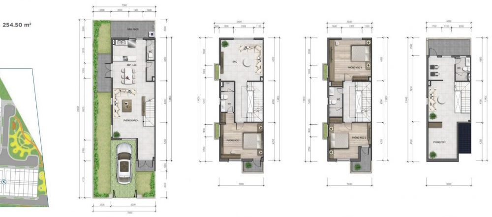 + Cụm 1 gồm có 4 căn với 2 căn 5x20m, 1 căn bìa 7x20m và 1 căn góc 15x20m.