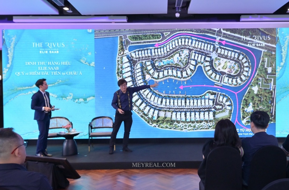 Phong thủy dinh thự The Rivus có địa thế “thủy bao” với 4 mặt giáp sông mang đến nhiều ích lợi cho sức khỏe thể chất và tinh thần cho gia chủ. “Dòng nước bao bọc xung quanh chảy từ sông Tắc hướng về sông Đồng Nai theo hướng từ Bắc đến Nam, uốn lượn vào bên trong lòng khu dinh thự, tương tự như nguồn tài lộc đi vào bên trong và được lưu giữ, mang đến rất nhiều tài lộc và vận may cho các gia chủ sống tại đây”, chuyên gia Michael Chiang chia sẻ.