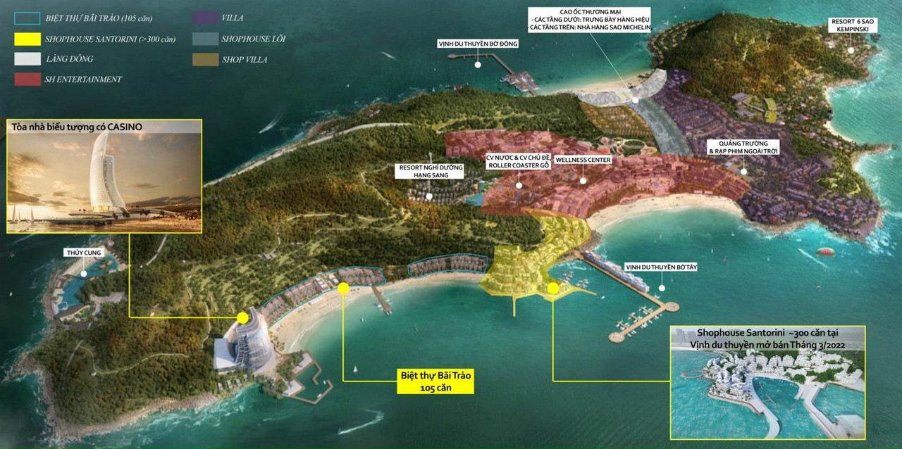 ► Tiện ích: Casino, bến du thuyền, 3 công viên chủ đề, thủy cung, khu vui chơi, thương mại và dịch vụ…
