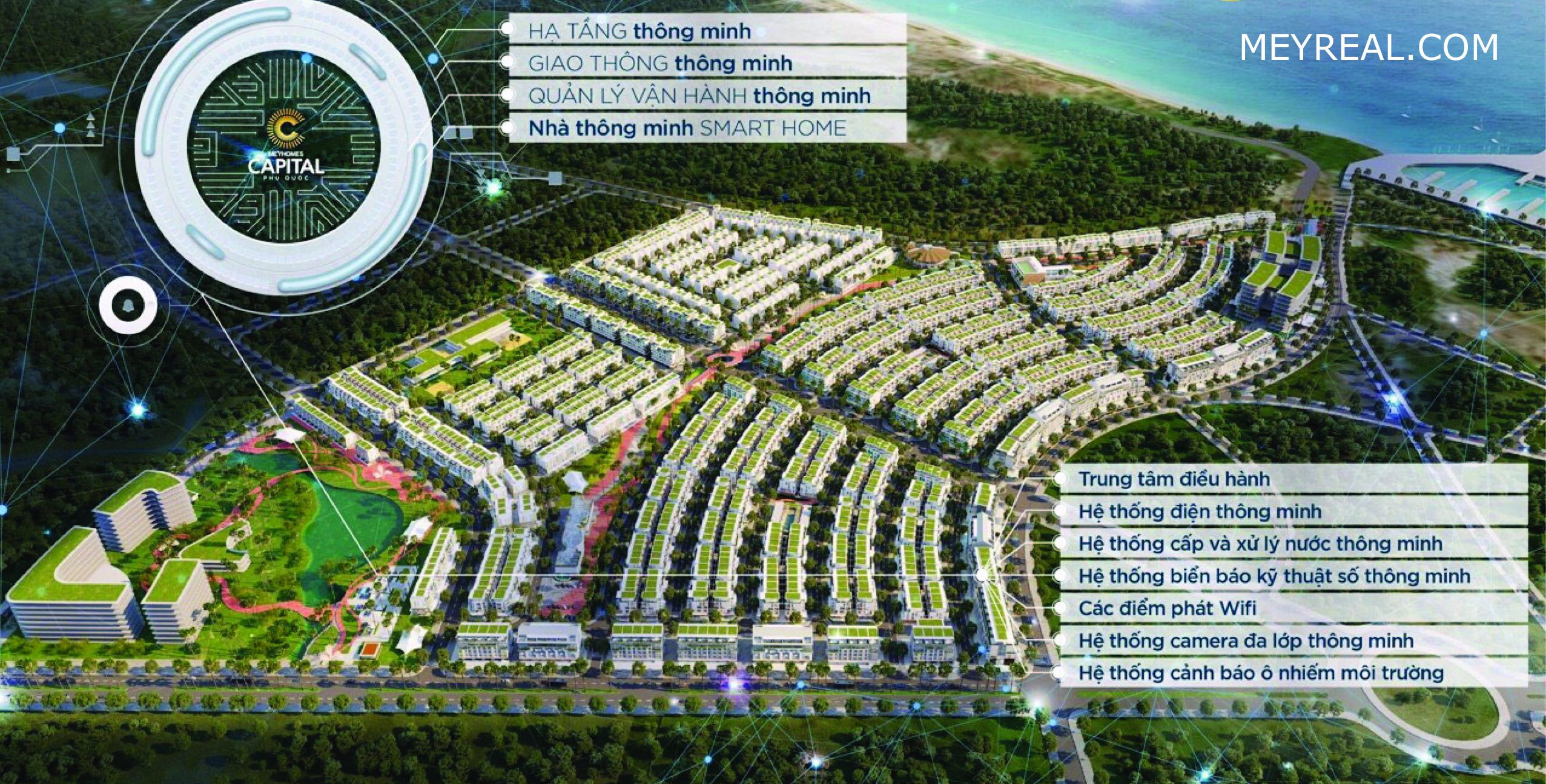 Khu đô thị Meyhomes Capital Phú Quốc quy mô hơn 266ha được đầu tư phát triển theo mô hình đô thị phức hợp đa chức năng, mang tới cuộc sống tiện nghi đẳng cấp đáp ứng nhịp sống sôi động của thành phố hiện đại trong tương lai và là không gian sống trong lành trong lòng vịnh biển, mật độ phủ xanh lên tới 65% diện tích.