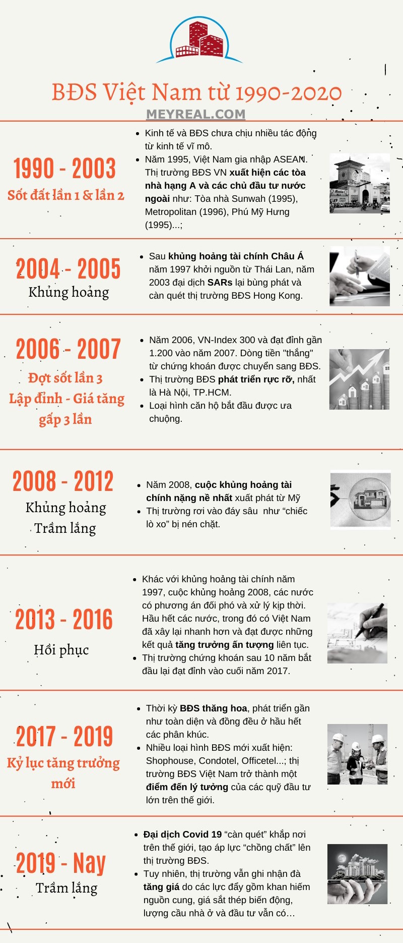 Sơ lược thị trường Bất động sản Việt Nam qua 30 năm phát triển với nhiều thăng trầm, những biến động cũng gắn liền với các chính sách kinh tế của đất nước cũng như tác động của thế giới, cho ta thấy được cái nhìn toàn cảnh.