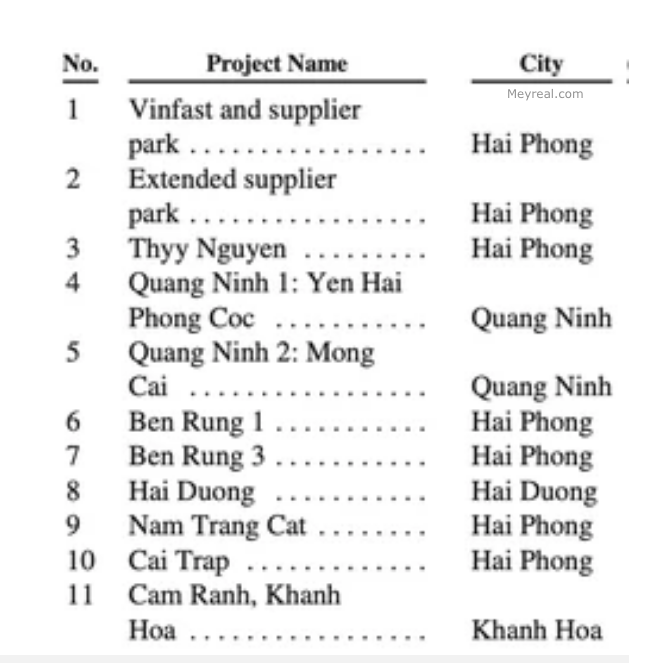 Vinhomes đang triển khai 11 dự án bất động sản Khu công nghiệp, chủ yếu tại Hải Phòng và Quảng Ninh. Tổng diện tích các dự án vào khoảng 4.730 ha và có thể bắt đầu cho thuê từ năm 2023.
