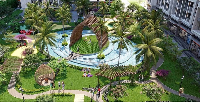 Dưới thềm nhà mỗi phân khu Zenpark, Pavilion, Bayfront là không gian xanh từ các khu vườn sinh thái như vườn thực vật Botanic Garden diện tích lên tới 6,4 ha, vườn treo giữa tầng mây Dubai Sky Garden, bể bơi Ốc Anh Vũ Grand Marina mang phong cách resort.